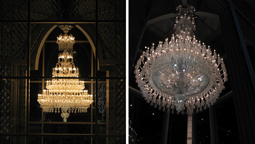 中央広場にはバカラのシャンデリア。