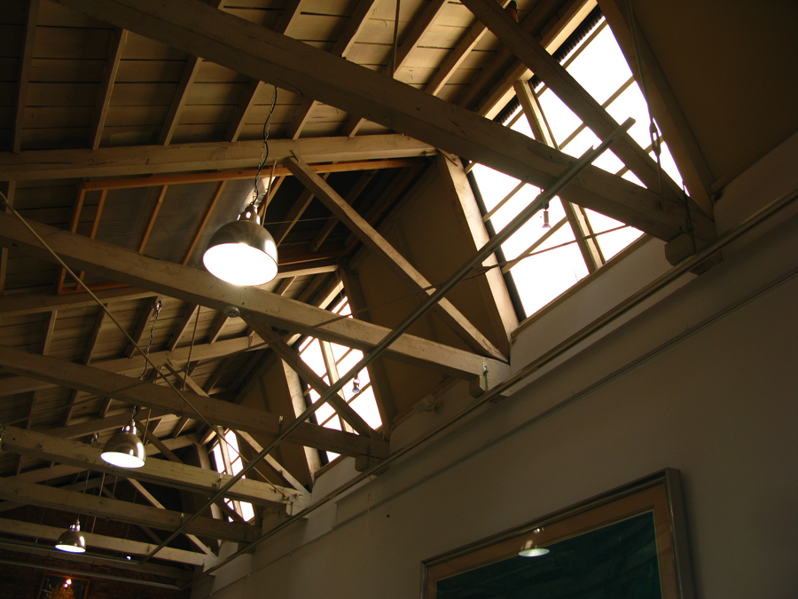 屋根の北側部分の窓を開けることで 織物に直射日光から守るために工夫した形です。