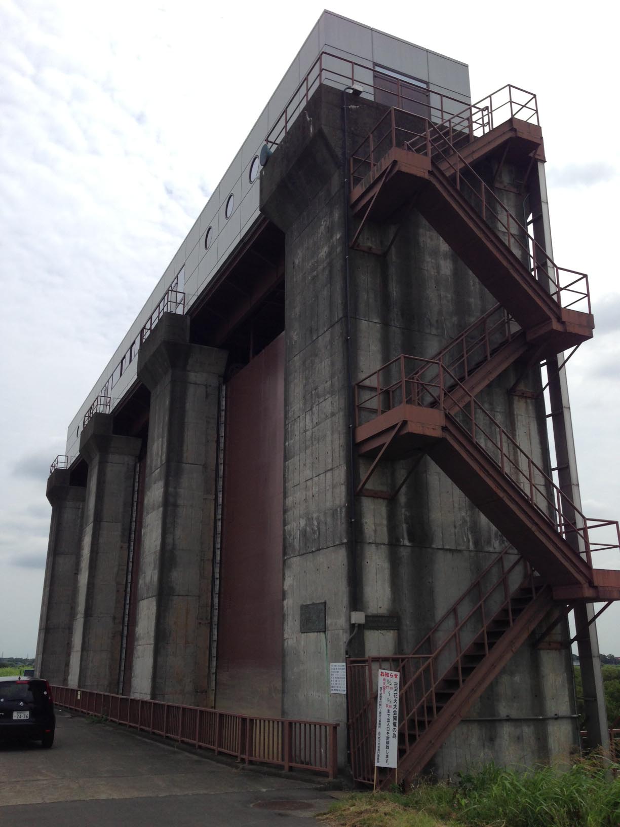 大きな水門! 首都圏を洪水から守る ”渡良瀬遊水地” のメインの排水口です。